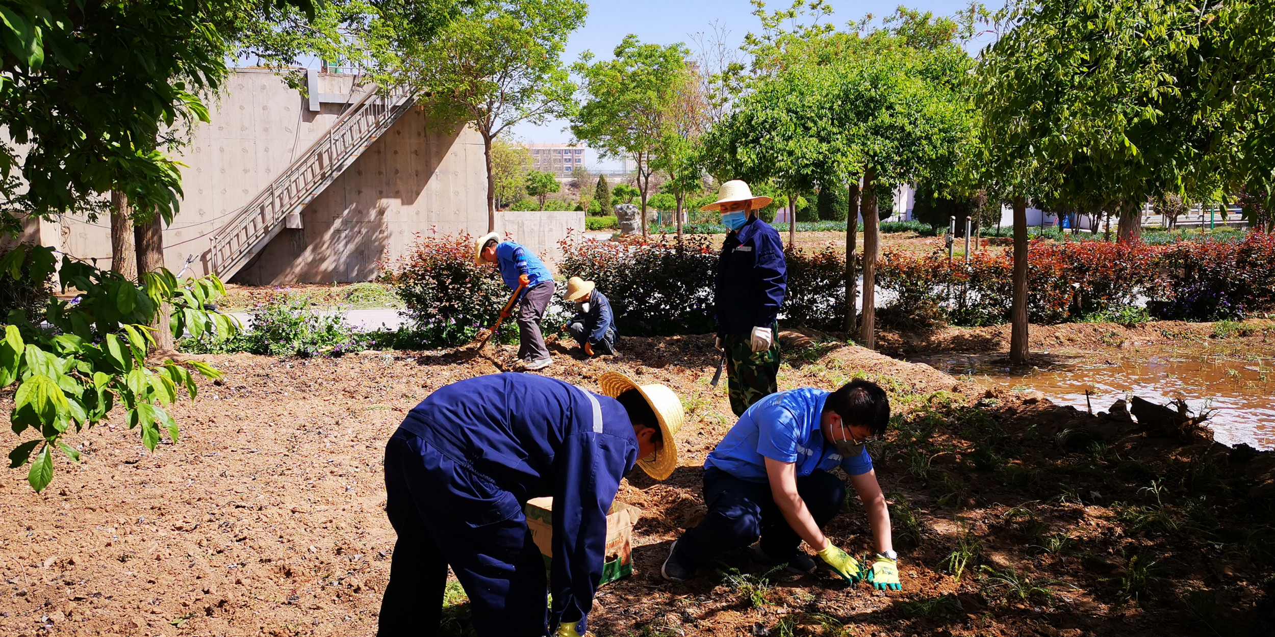 春回大地,萬物復(fù)蘇,正是綠化好時節(jié)。白銀市給排水公司污水處理廠抓住春季綠化有利時機(jī),早準(zhǔn)備、早安排、早行動,在廠區(qū)全面開展春季綠化工作。5月11日,污水廠組織廠內(nèi)職工集中開展花木種植活動,許多黨員、職工放棄了自己的休息時間,積極參加廠內(nèi)綠化勞動。大家擼起袖子,拿著工具,三五成群、分工協(xié)作,或揮鍬挖坑,或栽種花苗,或分揀苗木,干得十分起勁,火熱的勞動現(xiàn)場活力四射,笑聲連連,一個個忙碌的身影成了廠區(qū)內(nèi)最美的畫面。在大家的齊心協(xié)力下,整整一天的時間,5000株水蠟,5000株虱子草終于栽種完畢,可以想象不遠(yuǎn)的將來,這里花紅葉綠,生機(jī)勃勃的景象。這次集體綠化活動,不僅增強(qiáng)了污水廠干部職工隊(duì)伍的凝聚力、戰(zhàn)斗力,同時也讓我們更加深刻的體會了‘綠水青山就是金山銀山’這一理念。
